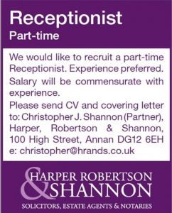 Job Vacancy – Part Time Receptionist Required By Leanne|2022-10-18T14:17:59+01:00October 18th, 2022|Uncategorised|Comments Off on Job Vacancy – Part Time Receptionist Required Share This Story, Choose Your Platform! FacebookXRedditLinkedInWhatsAppTumblrPinterestVkEmail Related Posts Albie Cottage, Waterbeck – Virtual Tour Added With Floor Plan – Price Review Too! Now – £198,000 (Negotiable) Gallery Albie Cottage, Waterbeck – Virtual Tour Added With Floor Plan – Price Review Too! Now – £198,000 (Negotiable) April 24th, 2026 New On The Market For Sale Gallery New On The Market For Sale April 22nd, 2026 New On The Market For Sale Gallery New On The Market For Sale April 22nd, 2026 Stratton, Calverley Place, Eastriggs – For Sale With No Onward Chain Gallery Stratton, Calverley Place, Eastriggs – For Sale With No Onward Chain April 22nd, 2026 Properties Coming On To The Market For Sale Soon – List Updated 22/04/26 Gallery Properties Coming On To The Market For Sale Soon – List Updated 22/04/26 April 22nd, 2026