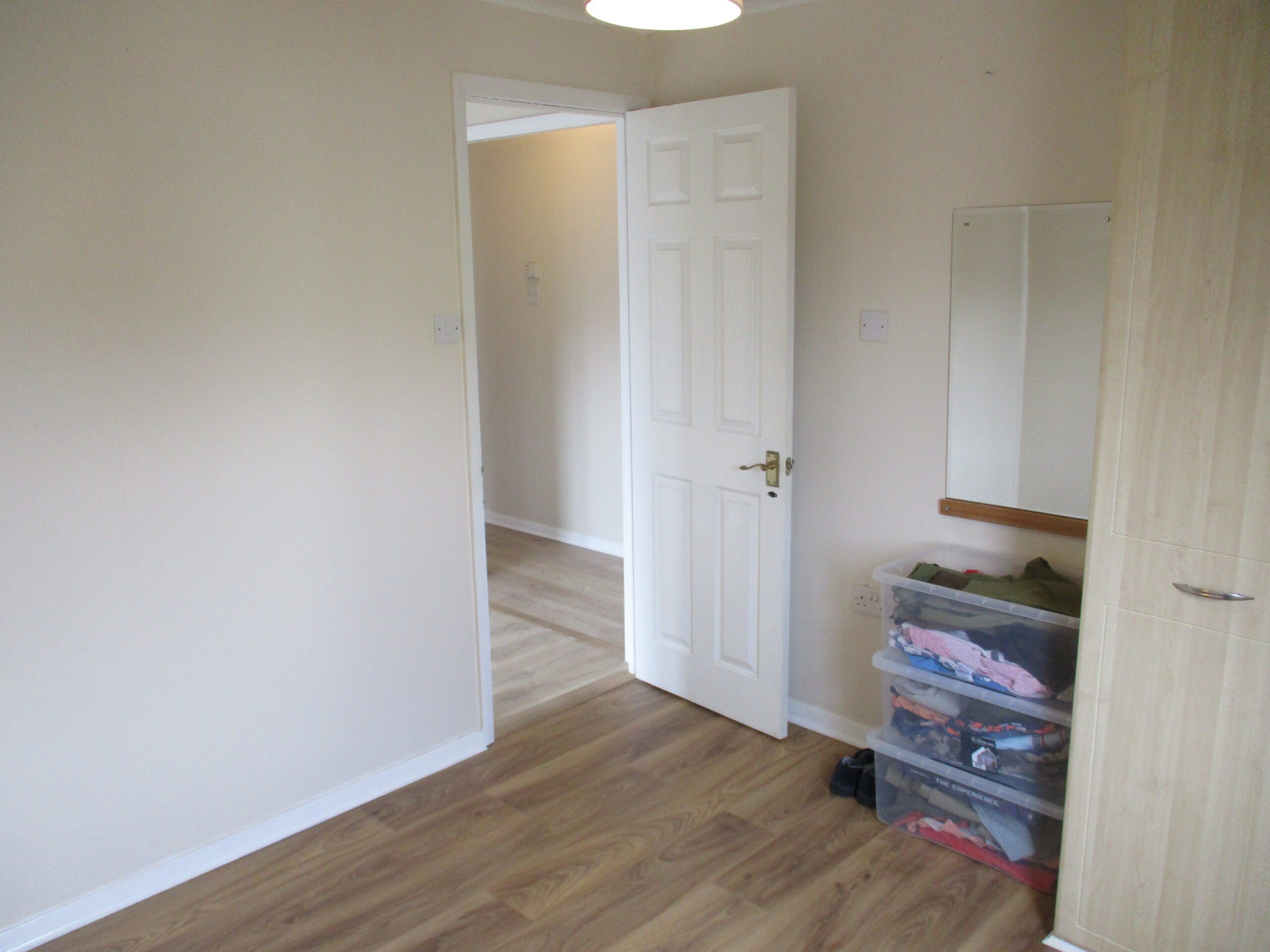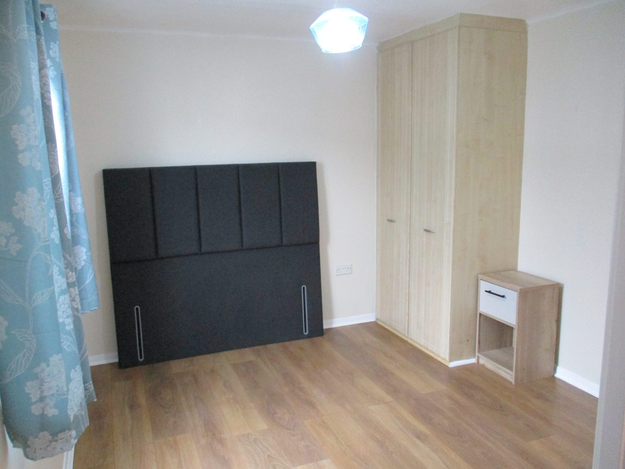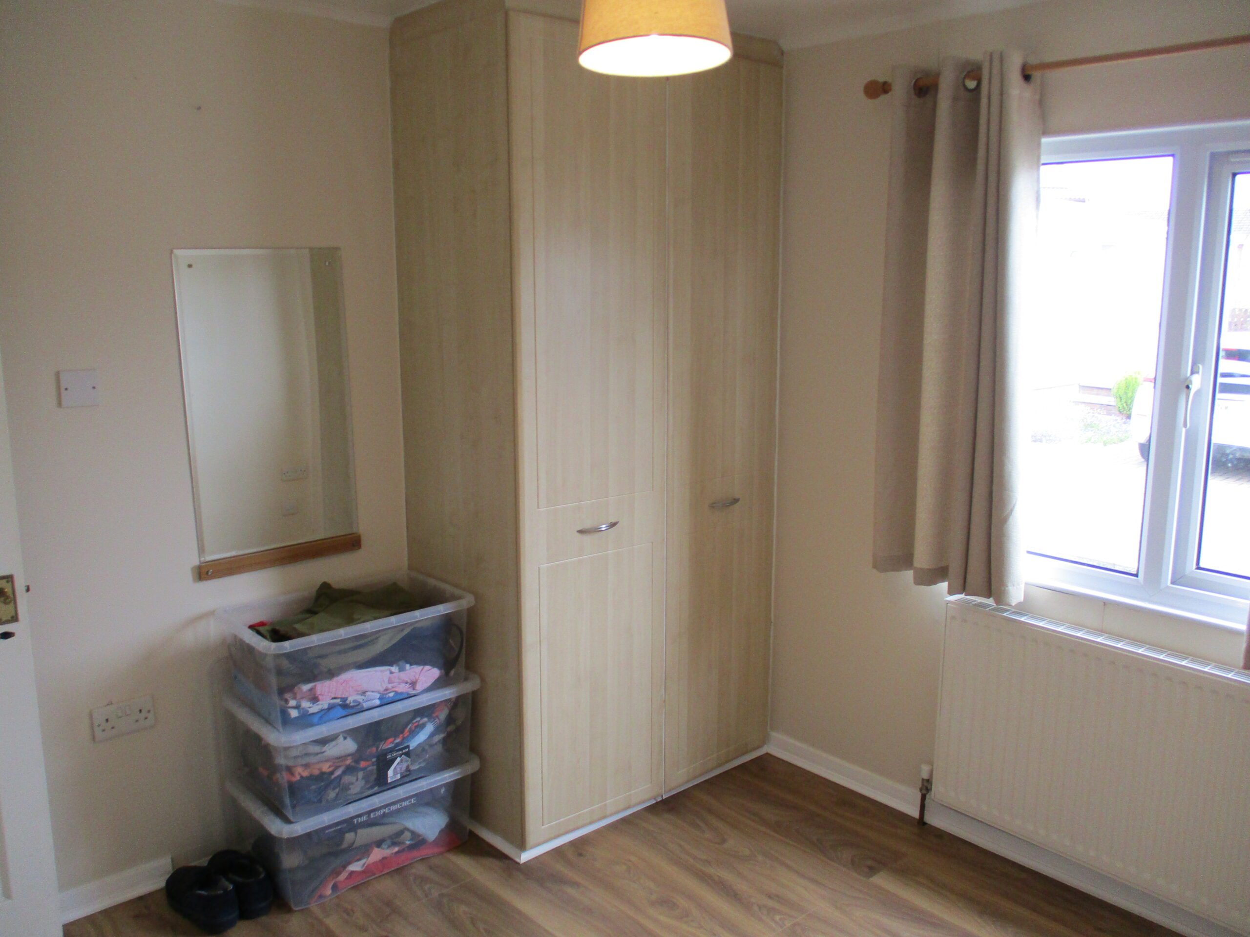 Double glazed window to the side elevation. Curtains. Built-in wardrobe with rail and shelf. Lightshade. Wall mounted display mirror. Laminate flooring. Radiator.