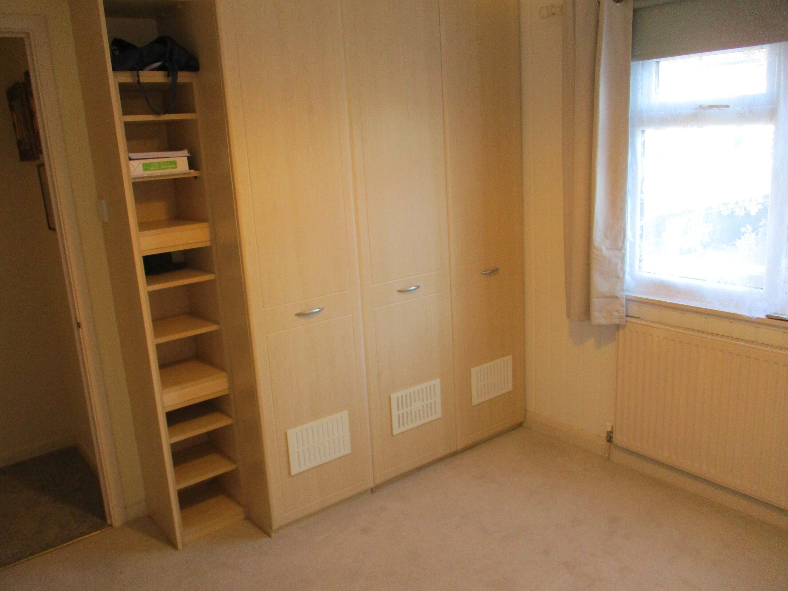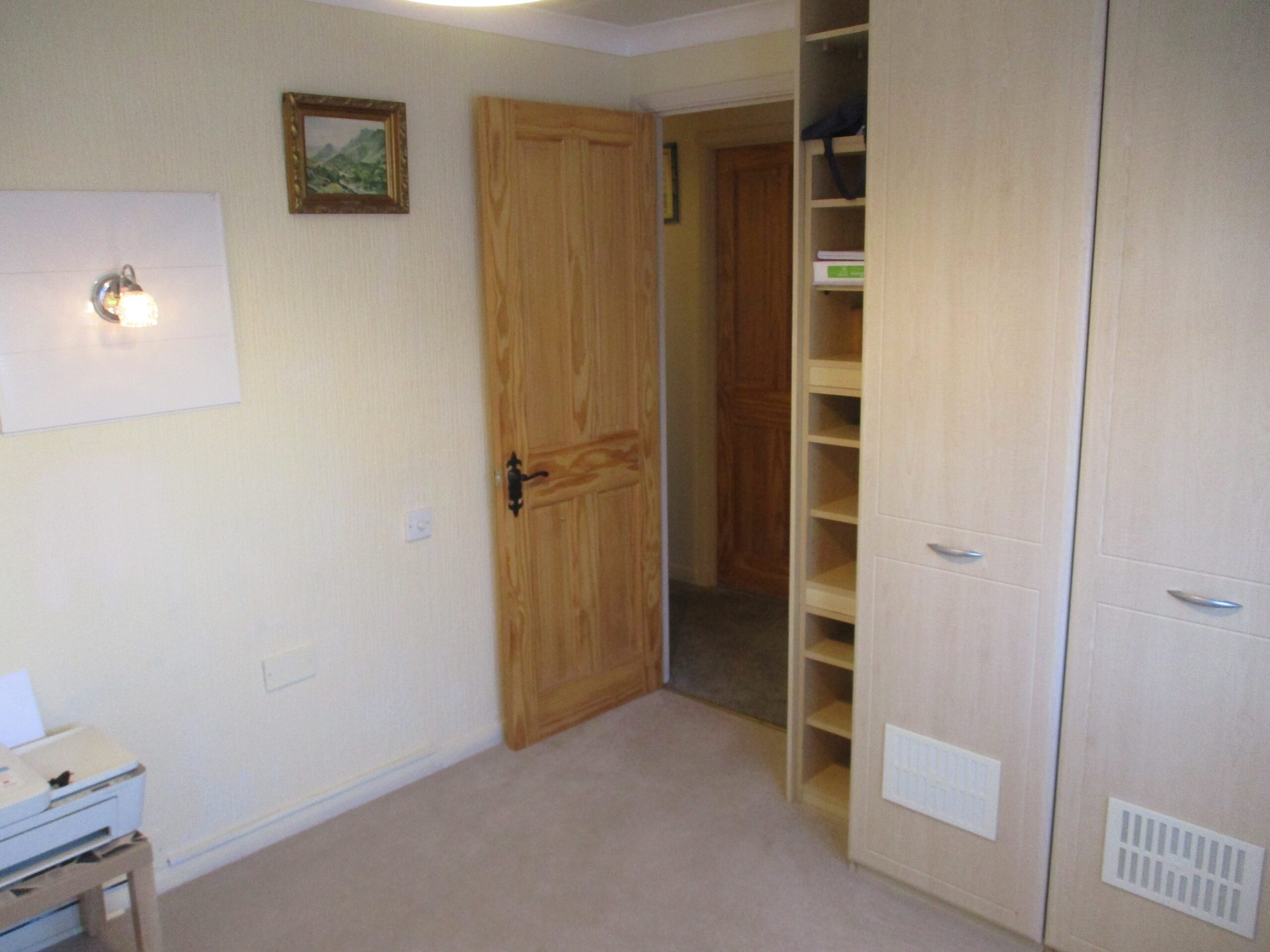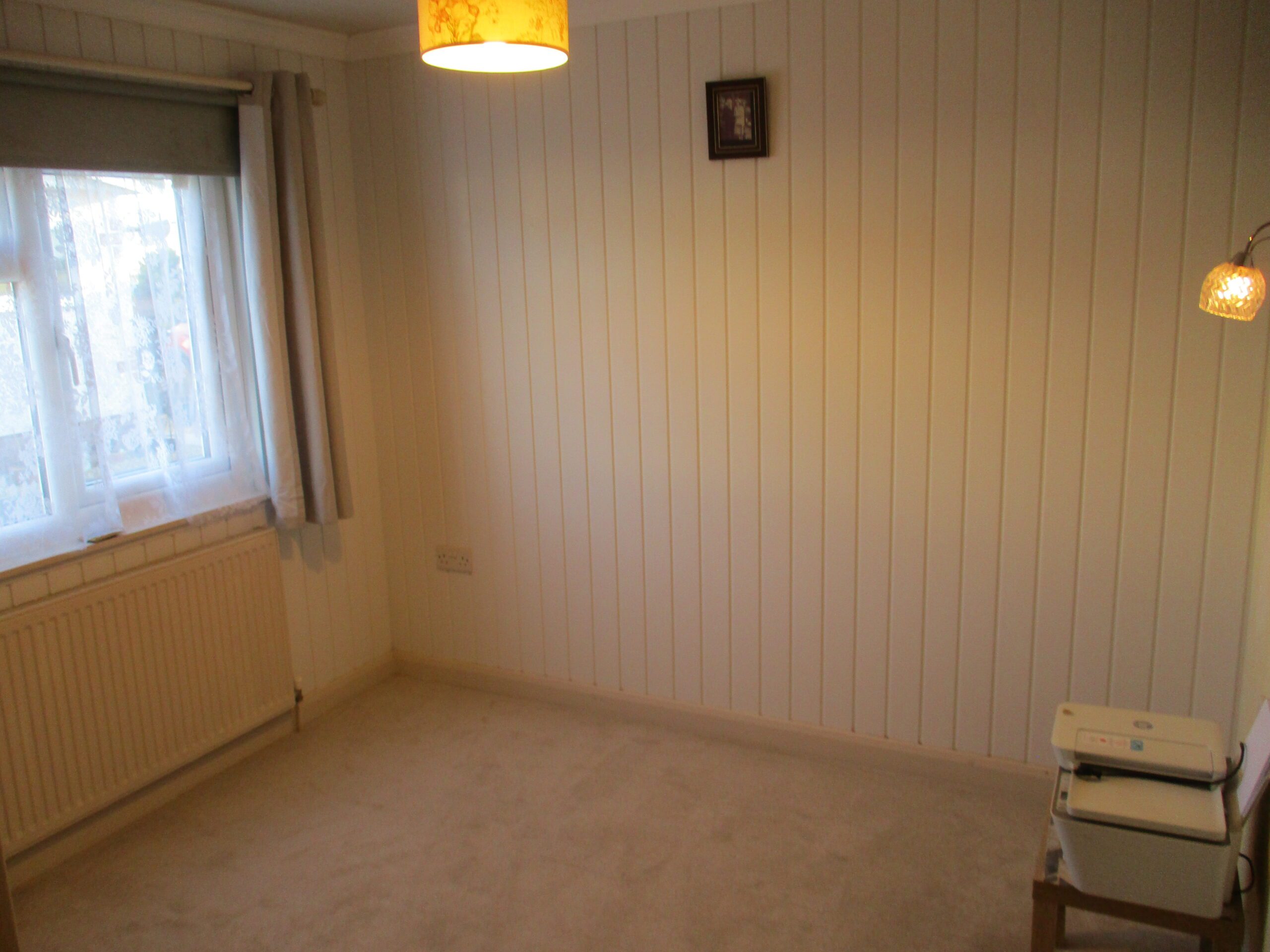 Double glazed window to the side elevation. Roller blind. Built-in wardrobes with rails, shelving and wall mounted low level tubular electric heater. PVC panelling on two walls. Coving. Lightshade. Single wall light. Dimmer switch. Fitted carpet. Radiator.