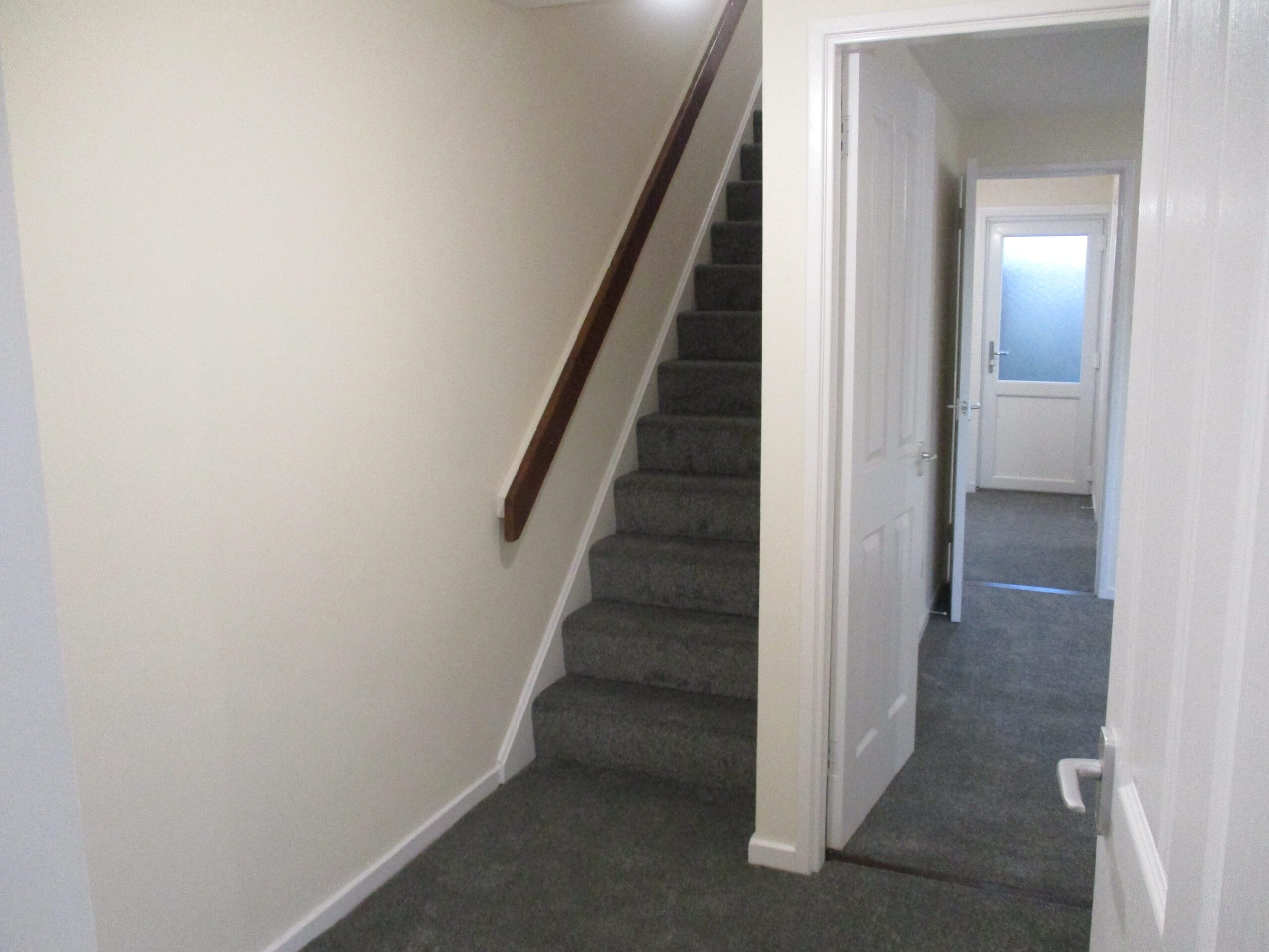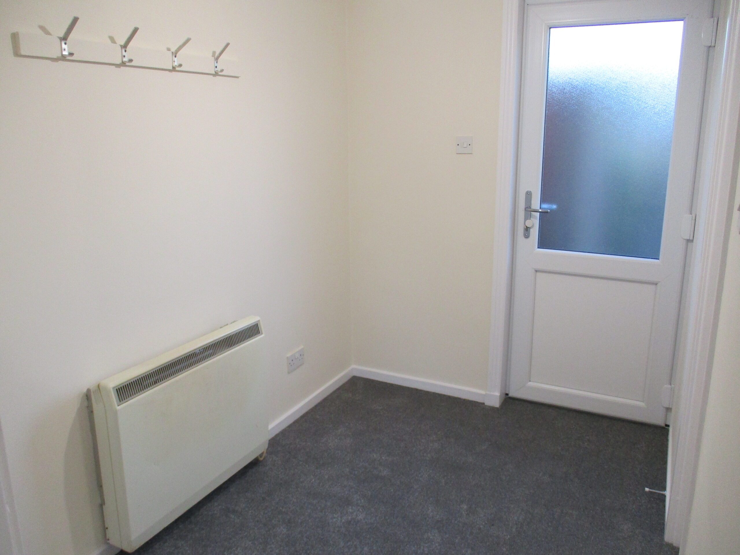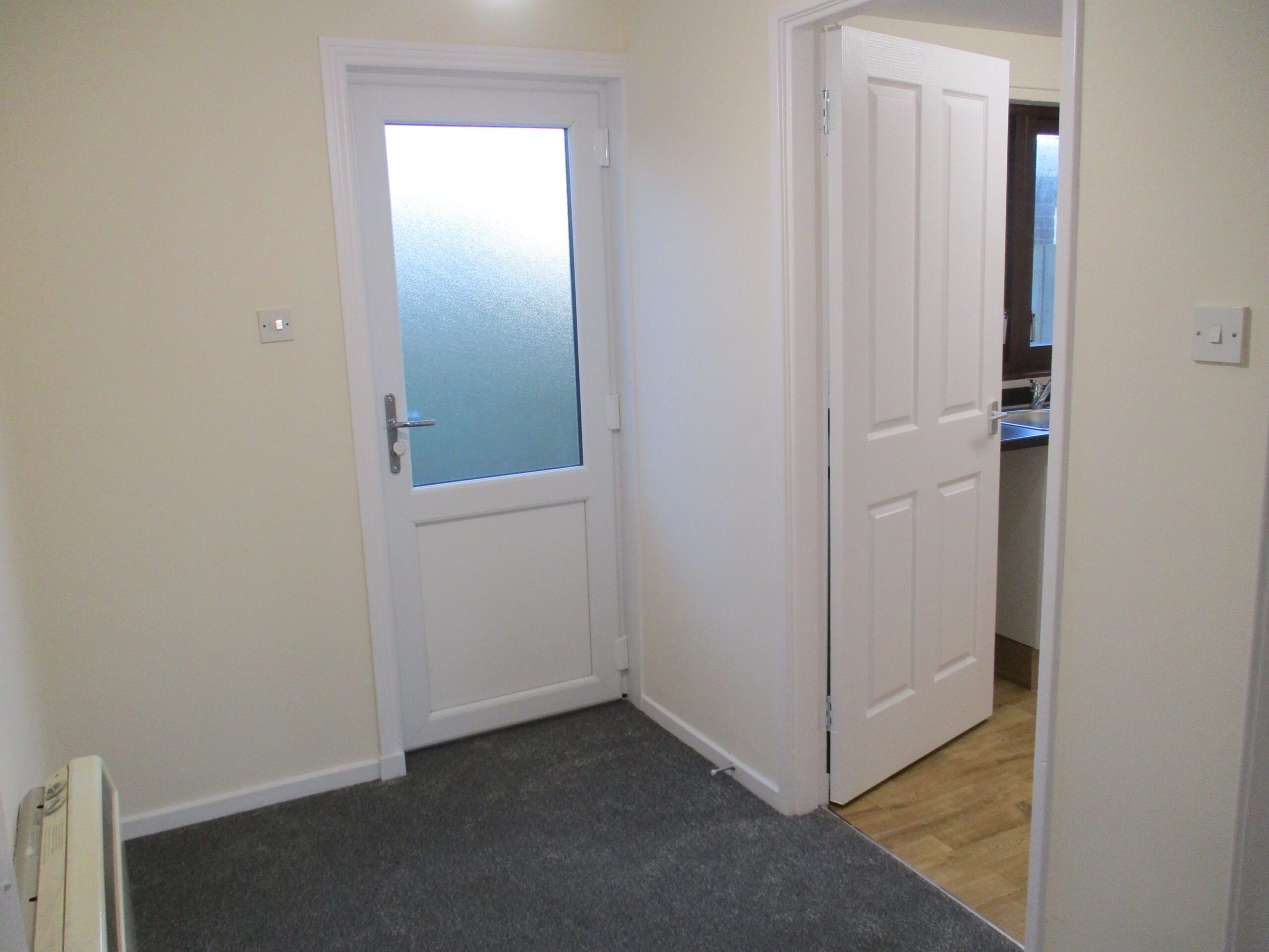 Brand new U.P.V.C part glazed rear door. Useful understairs shelved storage cupboard (0.90m x 0.86m). Coat hooks. Fitted carpet. Electric storage heater. Door through to fitted kitchen.