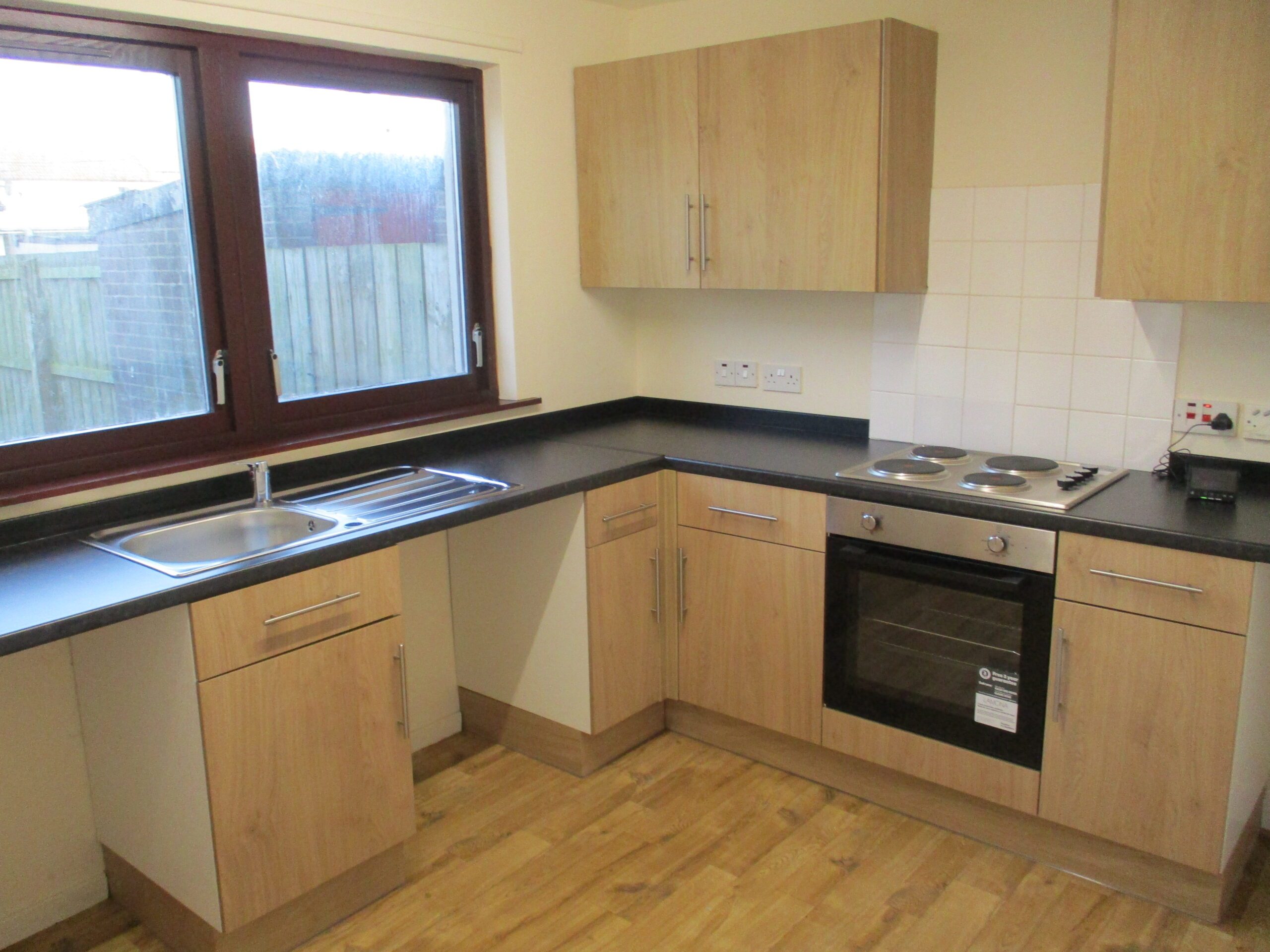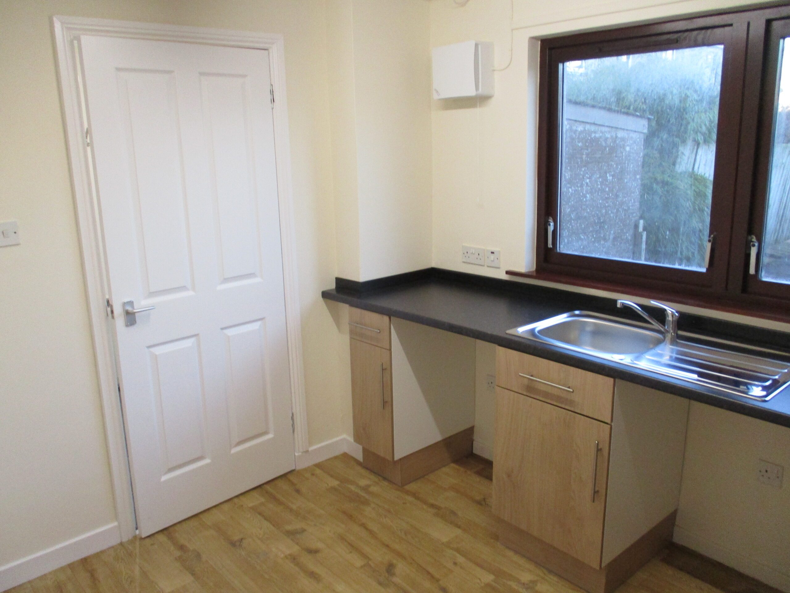 Newly fitted modern doors units incorporating a single drainer sink unit with single lever chrome mixer tap. Brand new built-in fan-assisted oven and hob. Tiled above hob area. Plumbed for washing machine. Space for tumble dryer and fridge/freezer. Ceiling striplight. Heat alarm. Vinyl flooring. Wall mounted fan heater.