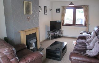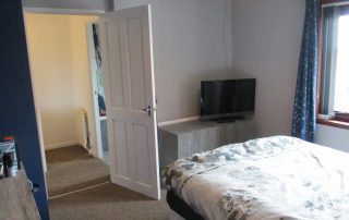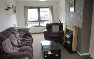Generously proportioned dual aspect room with double-glazed windows to front and rear elevations with vertical blinds. Electric pebble affect fire with ornamental fire surround. Smoke alarm. Two light fittings. Television & telephone points. Fitted carpet. Two radiators with thermostatic valves.
