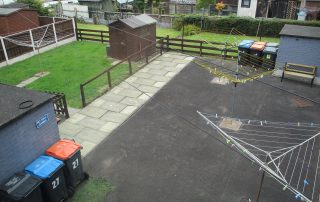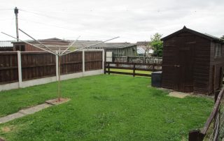 To the front is a small lawn with chipped area providing space for off-road parking. Within the rear garden, it is mostly lawned with a timber-built garden shed. A brick-built garden store. There is also a rotary clothes dryer.