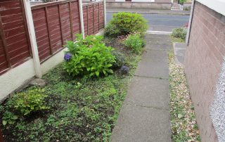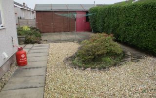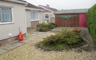 Low maintenance front and rear gardens mostly laid out in chipping stones and paving. Well stocked front alpine rockery plant area. Large paved patio area at the rear. There is a drive and parking area surfaced in monoblock paving and chipping stones to the left hand side of the property. Rotary clothes drier. Outside cold water tap.
