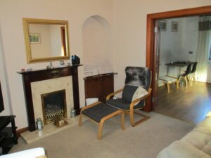 Lovely bright room with double glazed window to the front elevation.  Vertical blinds and curtains.  Cornice.  Smoke alarm.  Gas coal effect fire set on a marble hearth and ornamental surround.  Display recess with low level shelved storage compartment.  Television point. Triple light fitting. Fitted carpet.  Radiator with thermostatic valve.