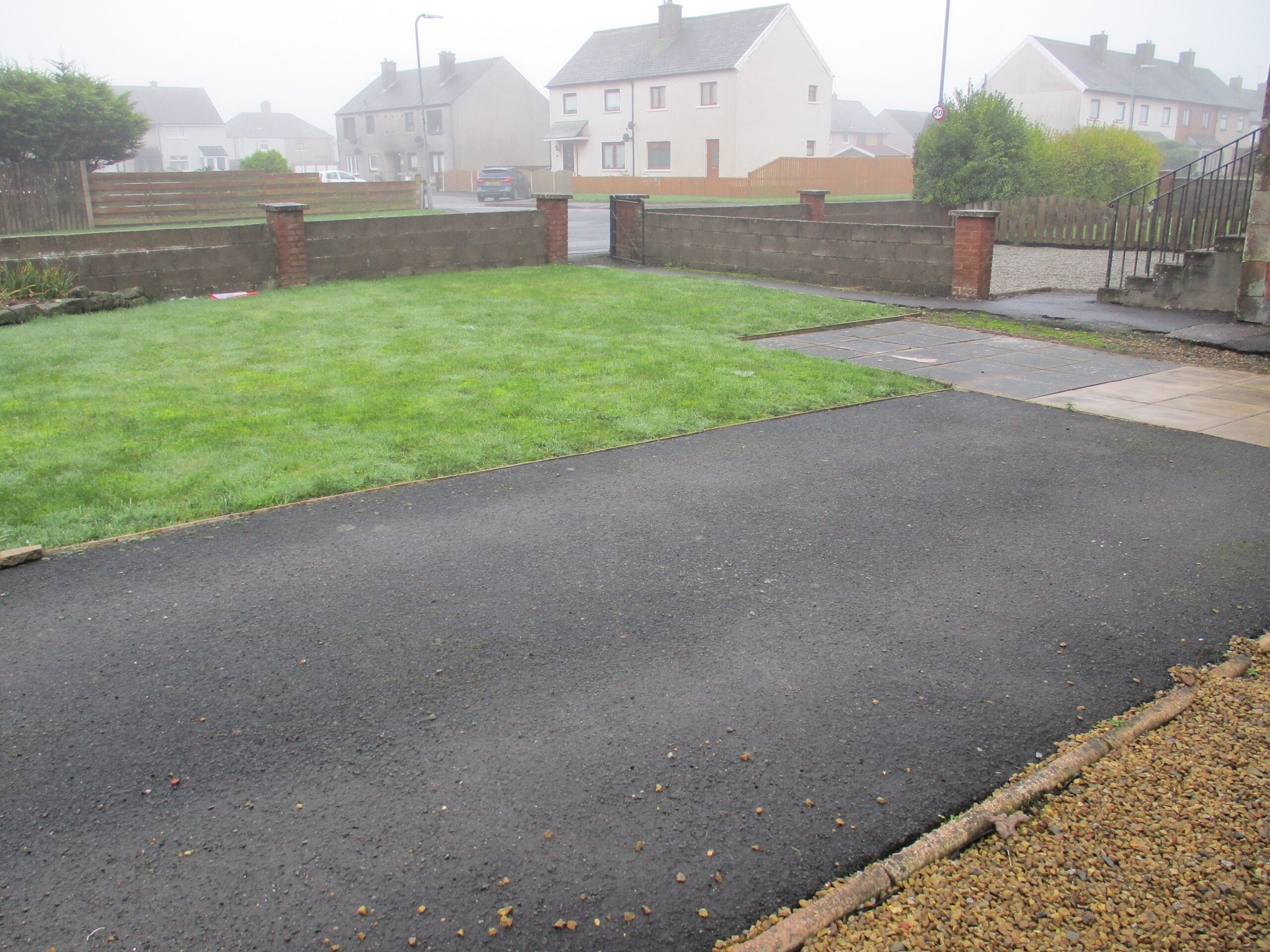 Low maintenance front garden which is laid out mostly in chipping stones with surrounding paved areas.  There is a good sized lawn area to the side and a useful tarmac driveway for car parking.  There is a shared footpath leading to the external doors of this property and the ground floor flat beneath. Property boundaries are generally defined by masonry walls and timber fencing.