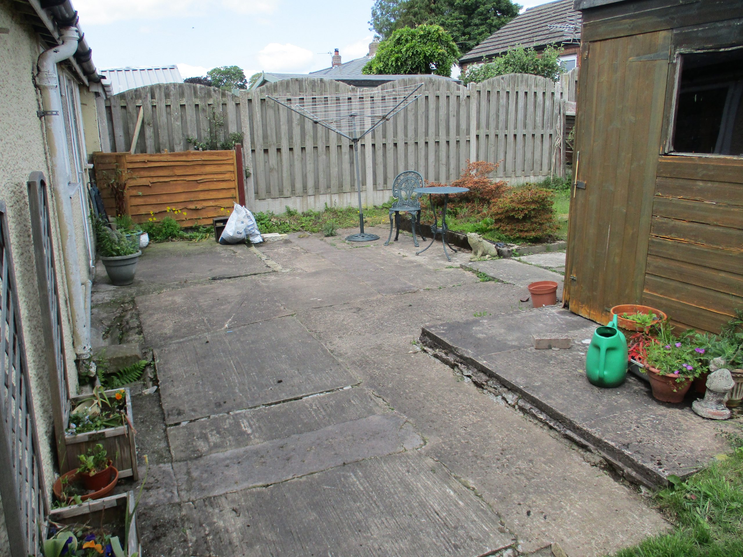 Neatly kept lawn area at the front bordered by a low level mature hedge and low level double entrance gates which lead on to a pathway which leads on to the rear garden. The rear garden is laid out in lawn with paved patio area. Rotary clothes drier. Timber built garden shed (1.80m x 1.30m).