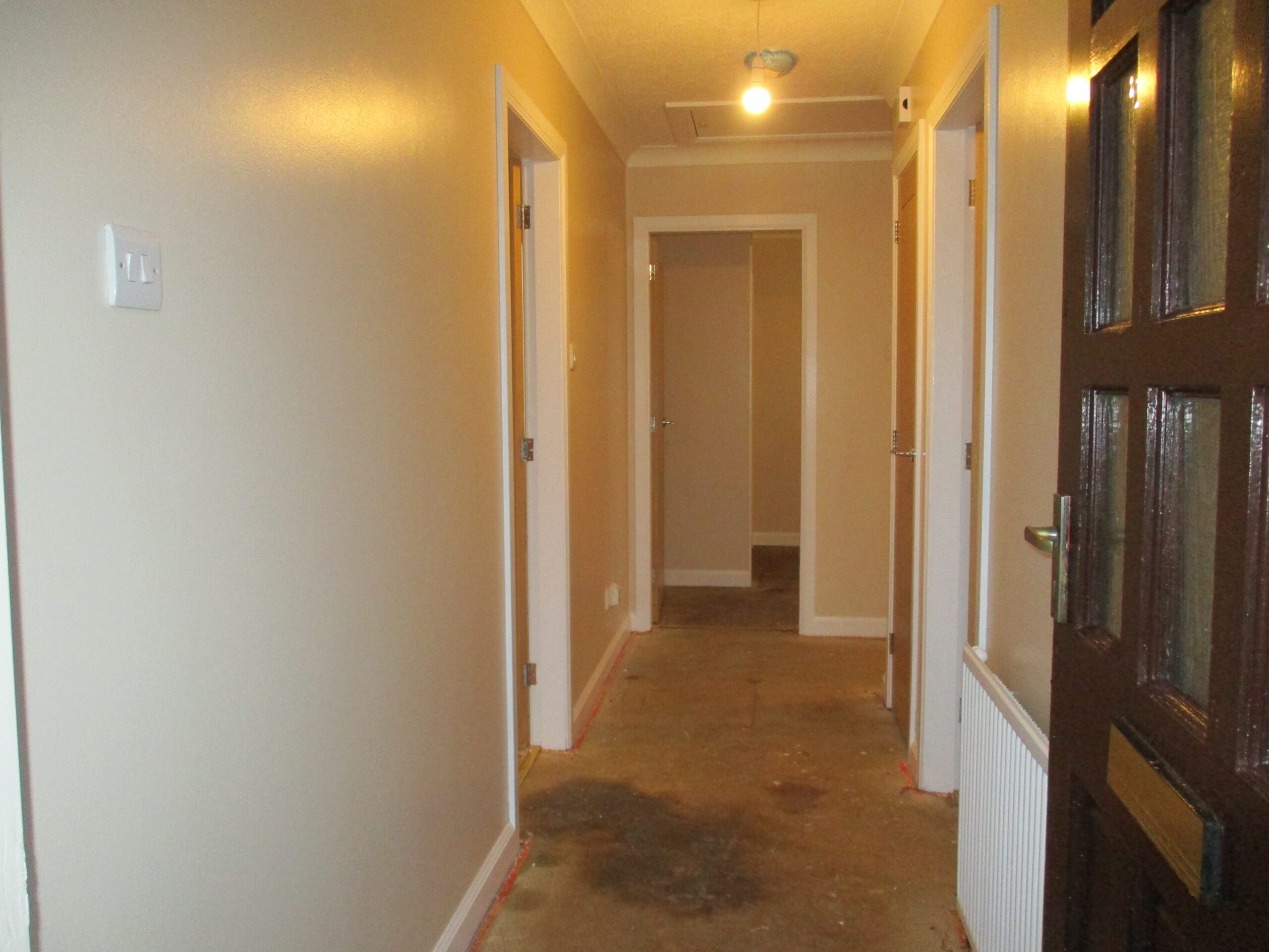 Entered through a part glazed timber framed door.  Coving. Telephone point.  Smoke alarm. Hatch with ladder attached to insulated attic.  Storage cupboard (0.75m x 0.65m) housing the electricity meter, consumer unit and central heating programmer.  Doors off to lounge. Two bedrooms and bathroom.