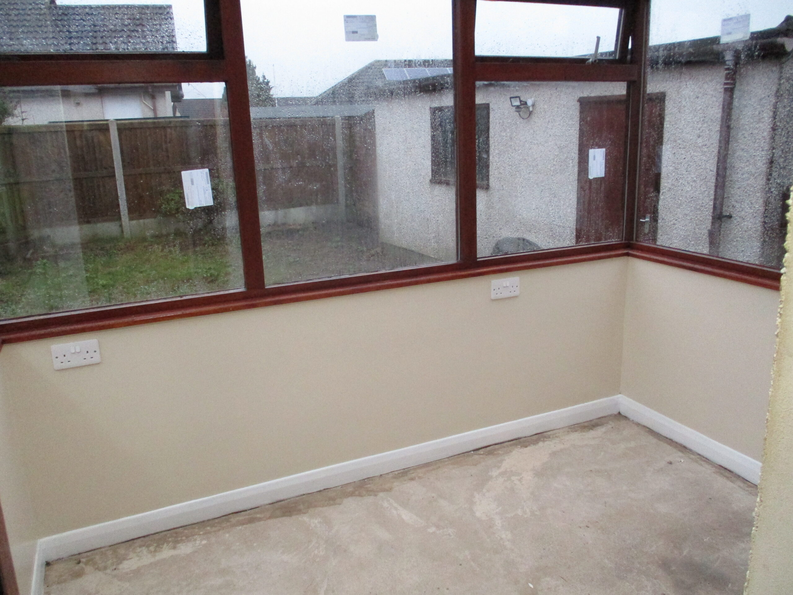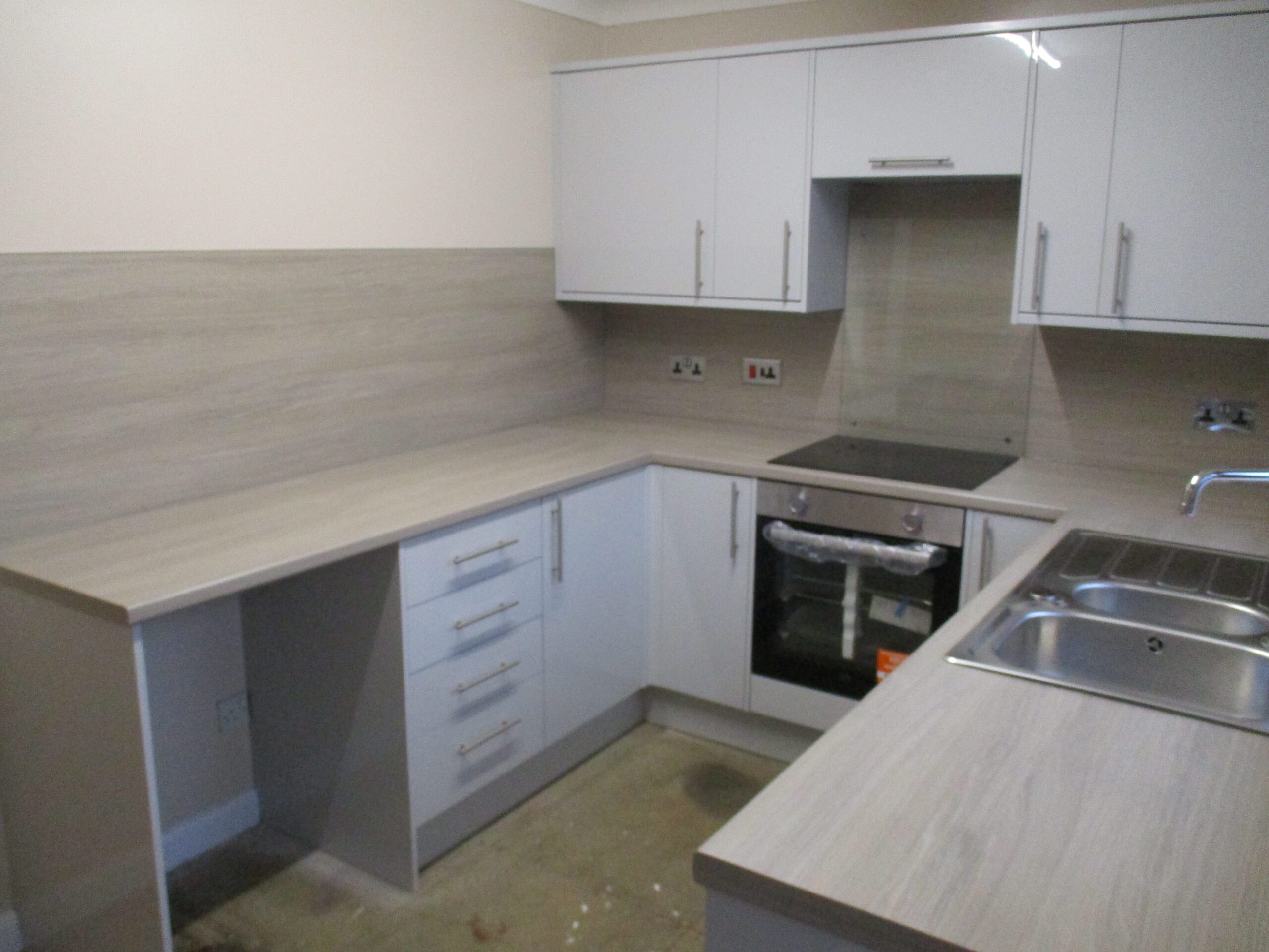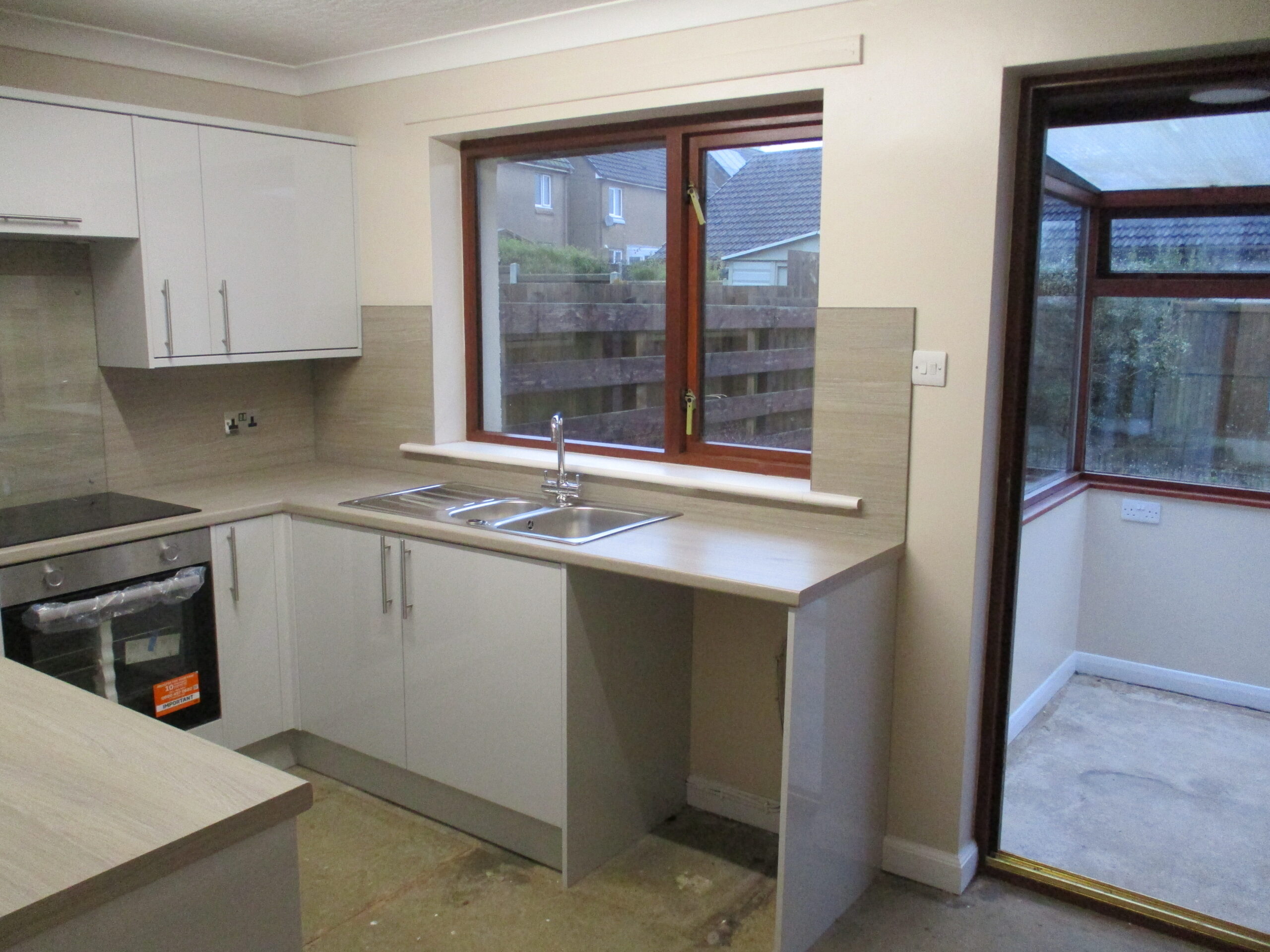 Brand new contemporary designed wall and base units incorporating a single drainer sink unit with vegetable compartment and chrome swan neck mixer taps.  Complimentary worksurface areas and upstands.  Brand new electric hob, fan-assisted oven and integrated extractor hood. Space for under counter fridge. Plumbed for washing machine.  Double glazed window to the rear elevation.  Heat alarm.  Ceiling striplight.  Coving.  Radiator with thermostatic valve.  Part glazed timber framed door through to the sun porch.