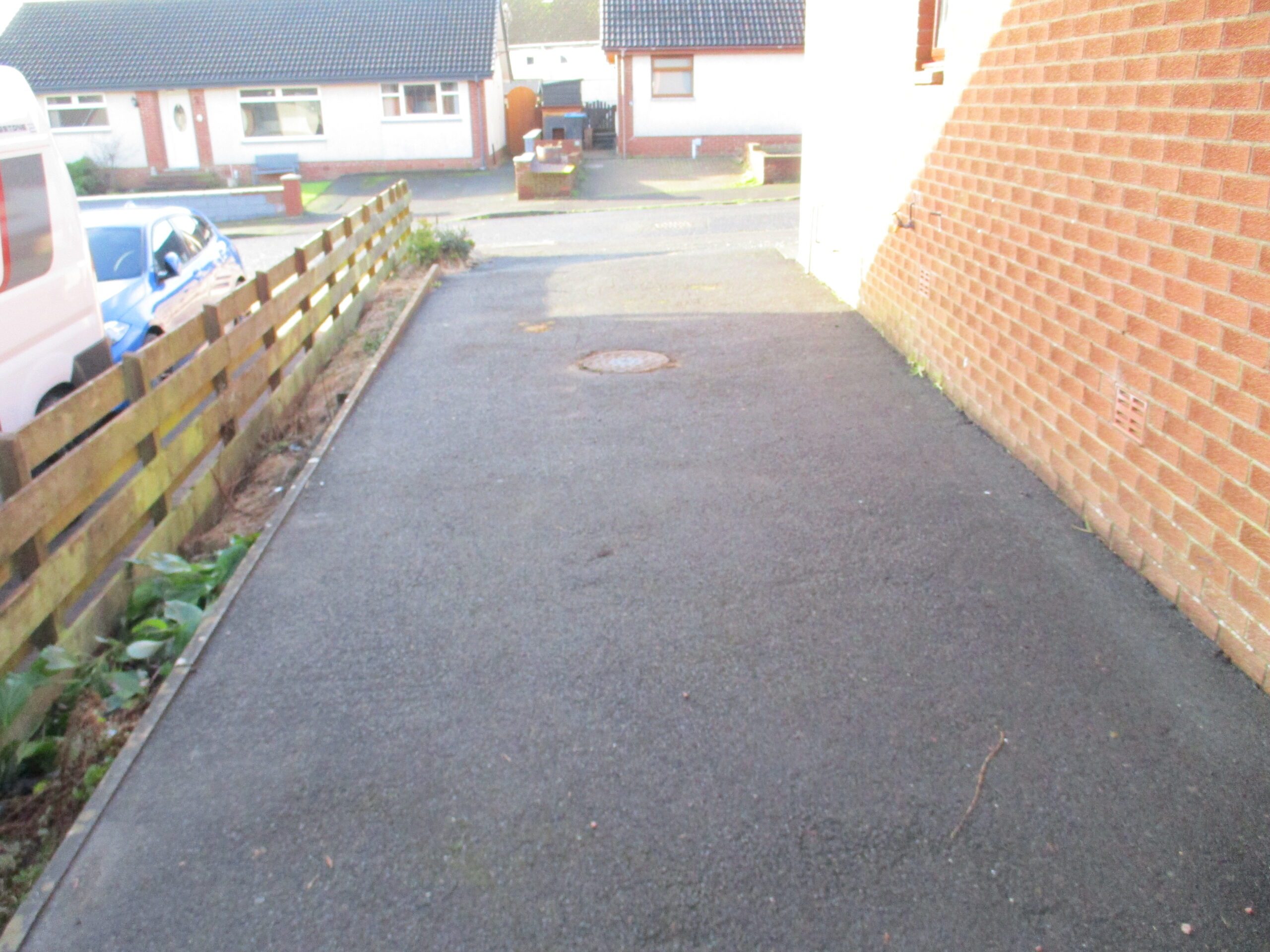 Tarmac driveway to the front and side of the property.  Wooden side gate leading through to the rear garden which is a blank canvas for the next purchaser.  Timber built garden shed.   Exterior lights.  Outside cold water tap.