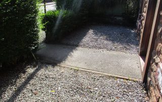 Small areas of garden ground are included to the front and rear of the property, laid to gravel. The front garden is enclosed by a low-level stone wall, privet hedge and timber fence. There would appear to be shared footpaths and additional communal grounds to the rear of the property
