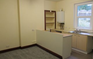 At Widest Points Range of base units incorporating a single drainer sink unit. Electric cooker point. Plumbed for washing machine. Space for fridge/freezer. Double glazed window to the rear elevation. Shelved display area. Concealed electricity meter and consumer unit. Wall mounted gas-fired Viessmann Vitodens combi-boiler. Ceiling light. Part glazed U.P.V.C rear door.