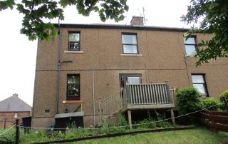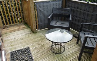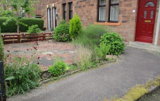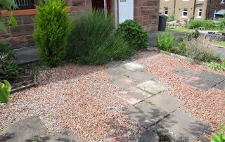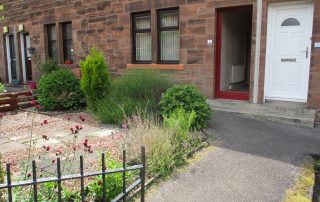 Low maintenance front garden which is laid out in chipping stones and well stocked shrub borders. To the rear is a shared drying green. Small decking area.