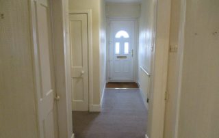 Entered through a part glazed PVC door. Compartment above front door concealing the electricity meter and fusebox. Smoke alarm. Lightshade. Telephone point. Useful carpeted storage cupboard (1.15m x 0.95m) with shelving and rail. WALK-IN STORAGE CUPBOARD (2.40m x 2.15m) with obscured double glazed window to the side elevation. Wall mounted Baxi 830 Combi boiler. Shelving. USEFUL CARPETED STORAGE CUPBOARD (1.15m x 0.95m) with shelving and rail. Fitted carpet with coir inset mat at front door. Radiator with thermostatic valve. White painted timber panelled doors off to lounge, fitted kitchen, bedroom and shower room.