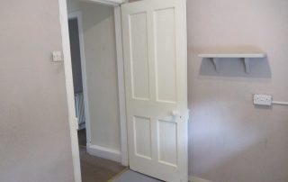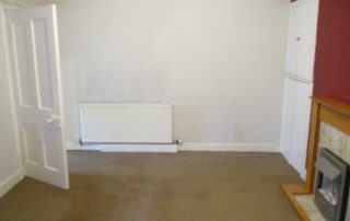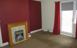 Lovely bright room with U.P.V.C. glazed rear door with built-in blinds, which leads onto a decked balcony. Double glazed window to the rear elevation. Roller blinds. Curtains. The fireplace is fitted with an electric fire and has a marble effect hearth and backing with a decorative timber surround. Shelved storage cupboard (0.85m x 0.60m) 4-Light chrome ceiling fitting. Television point. Telephone point. Coving. Fitted carpet. Radiator with thermostatic valve.