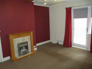 Lovely bright room with U.P.V.C. glazed rear door with built-in blinds, which leads onto a decked balcony.  Double glazed window to the rear elevation.  Roller blinds.  Curtains.  The fireplace is fitted with an electric fire and has a marble effect hearth and backing with a decorative timber surround.  Shelved storage cupboard (0.85m x 0.60m) 4-Light chrome ceiling fitting.  Television point.  Telephone point. Coving.  Fitted carpet.  Radiator with thermostatic valve.