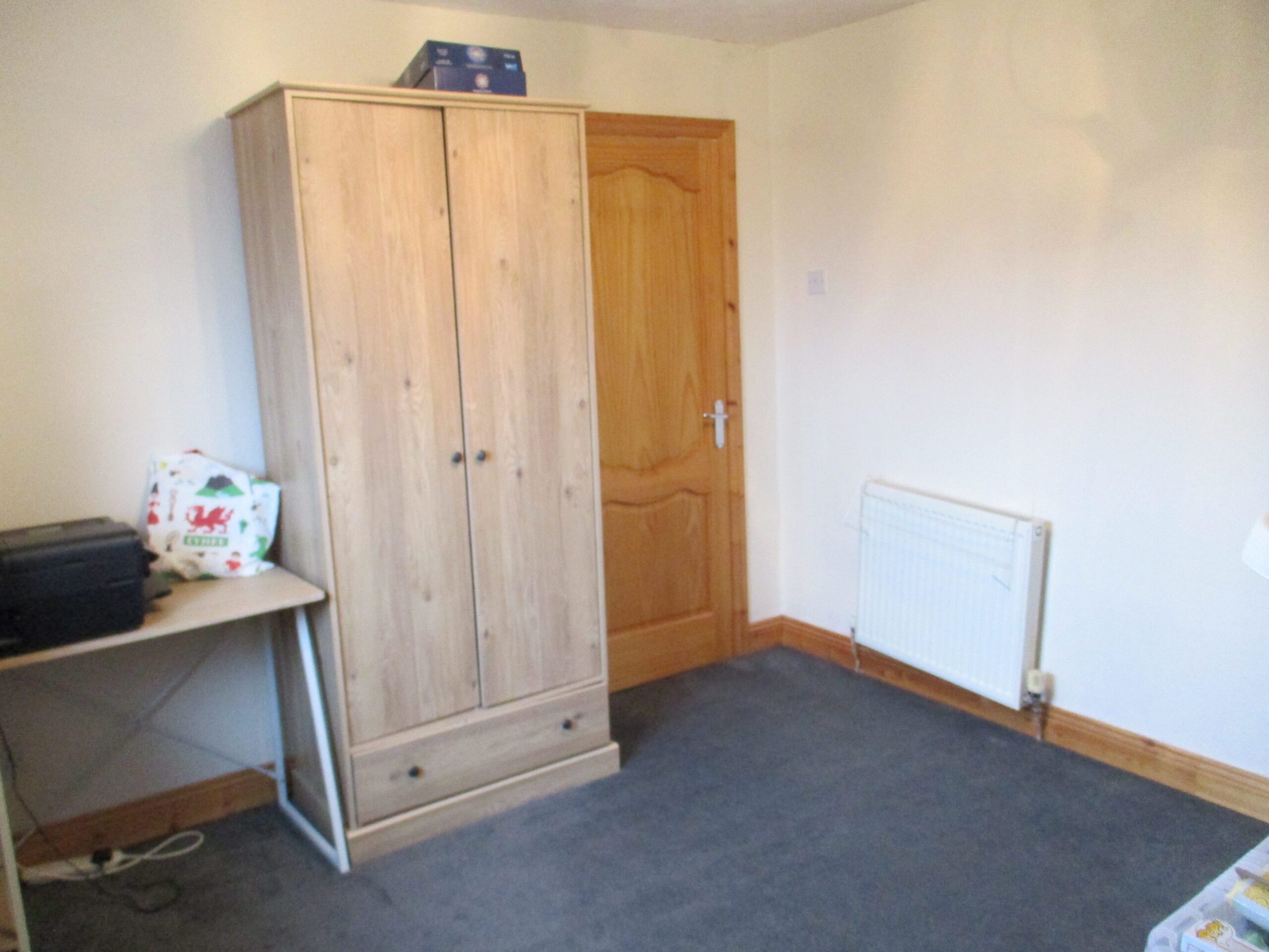 Two double glazed windows to the front elevation. 5-Light ceiling fitting. Built-in carpeted wardrobe (0.95m x 0.86m) with shelf and rail. Fitted carpet. Radiator with thermostatic valve.
