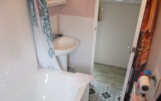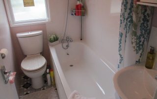 White three-piece suite comprising bath with shower mixer taps wash-hand basin with single chrome tap & a dual W.C. New tiled splashbacks above bath and wash-hand basin. New vinyl flooring. Extractor fan. Obscured double glazed window to the side elevation. Roller blind. Radiator with thermostatic valve. Above the wash-hand basin there is a new mirrored bathroom unit.