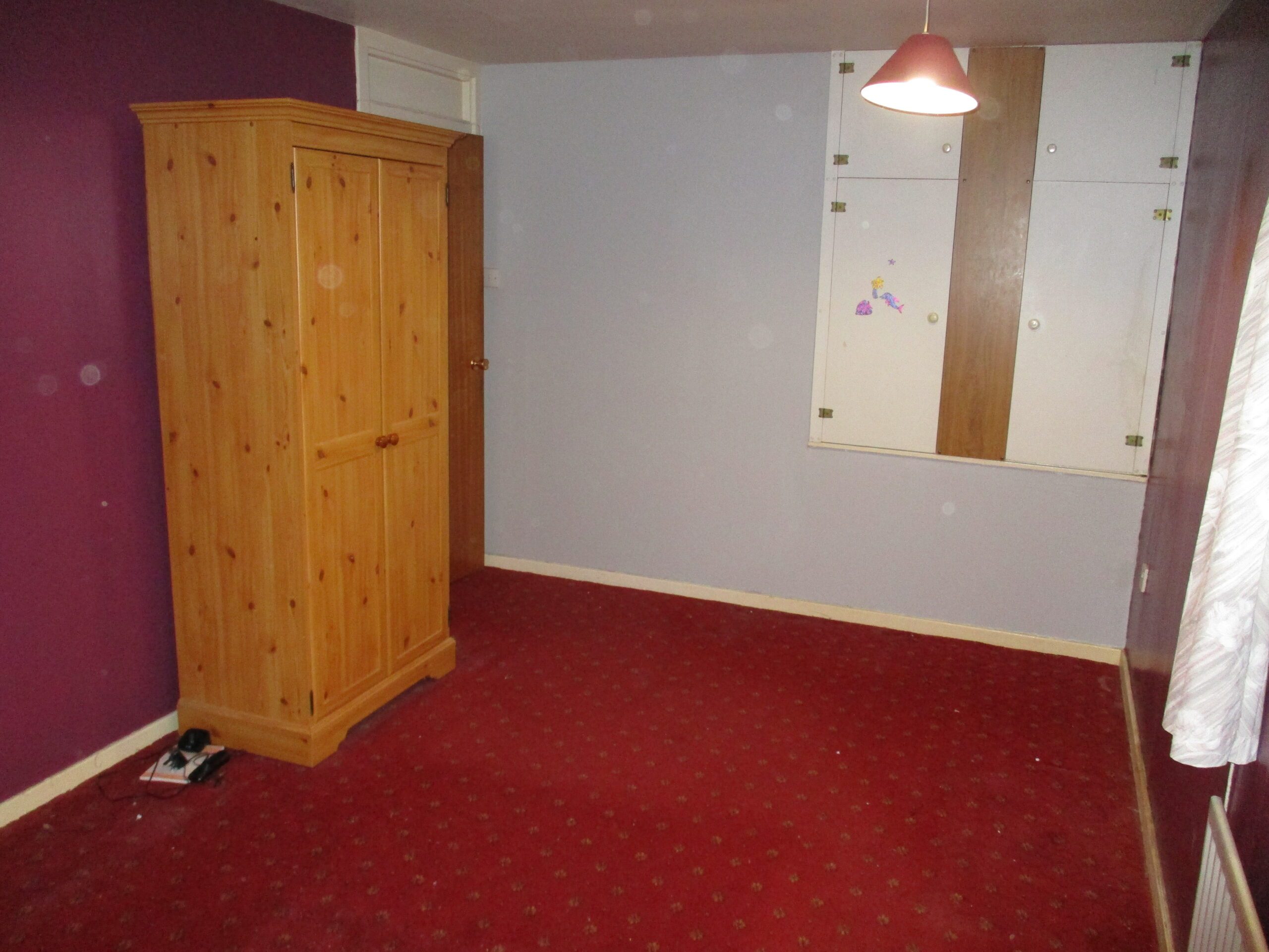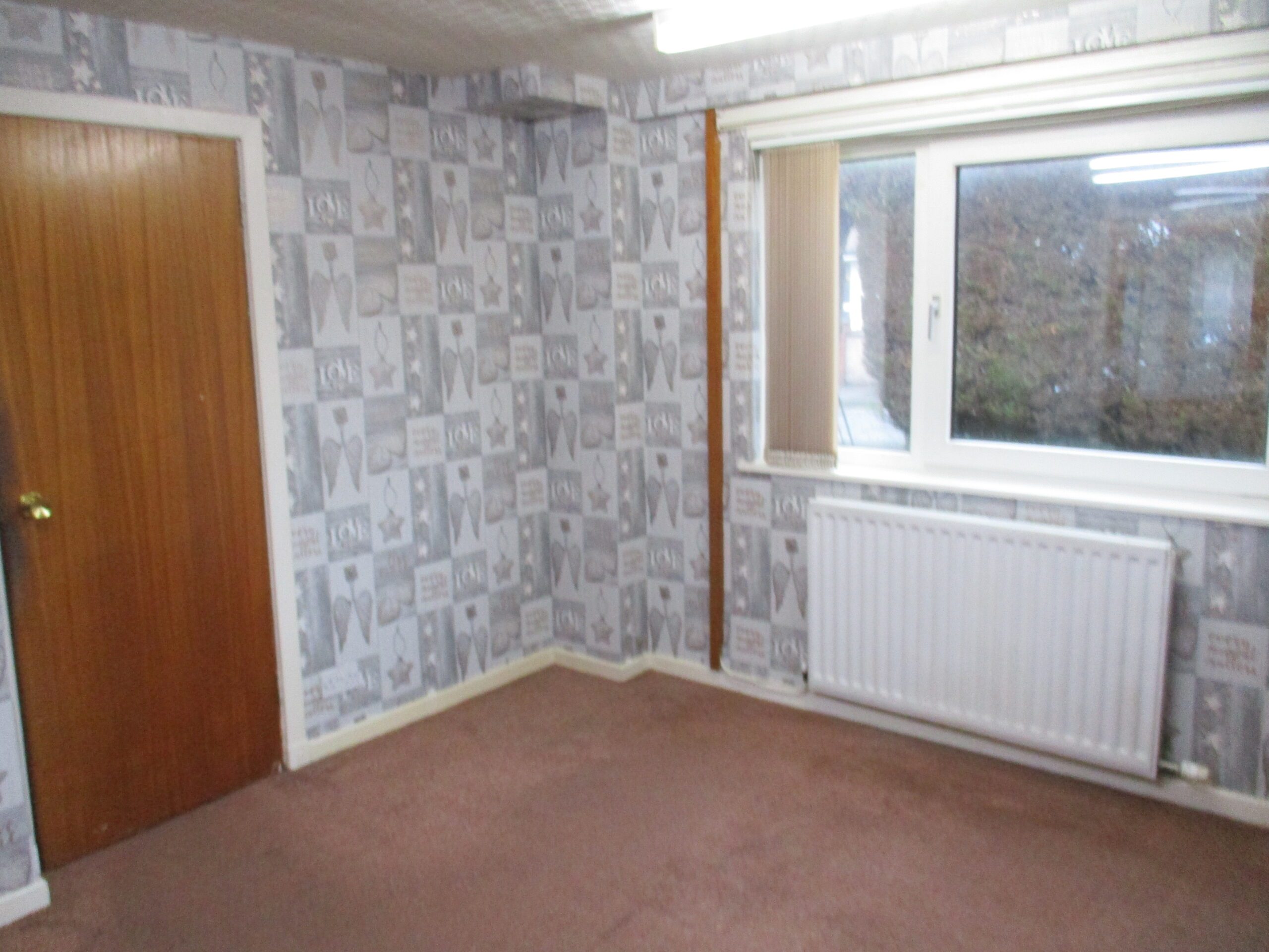 Final bedroom with double-glazed window to rear elevation with vertical blinds. Two light pendants. There is a handy built-in storage cupboard with compartments above (1.25m x 0.60m). fitted carpet. Radiator with thermostatic valve.