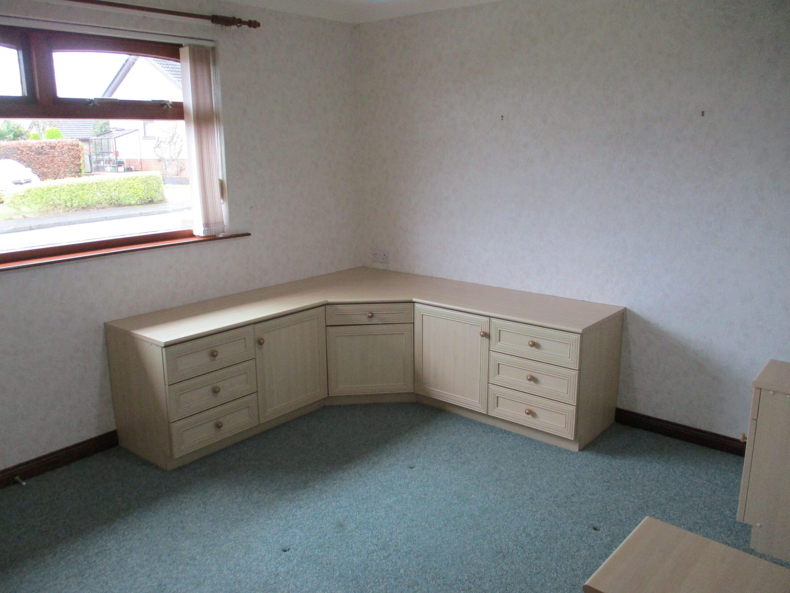 Double glazed window to the rear elevation. Vertical blinds. Coving. Built-in over the bed units, wardrobes and drawer units. Fitted carpet. Electric panel heater.