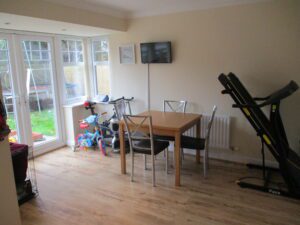 Useful built-in storage cupboard (1.30m x 0.90m) housing the pre-insulated hot water thermalstore. This has been fitted with an electrical