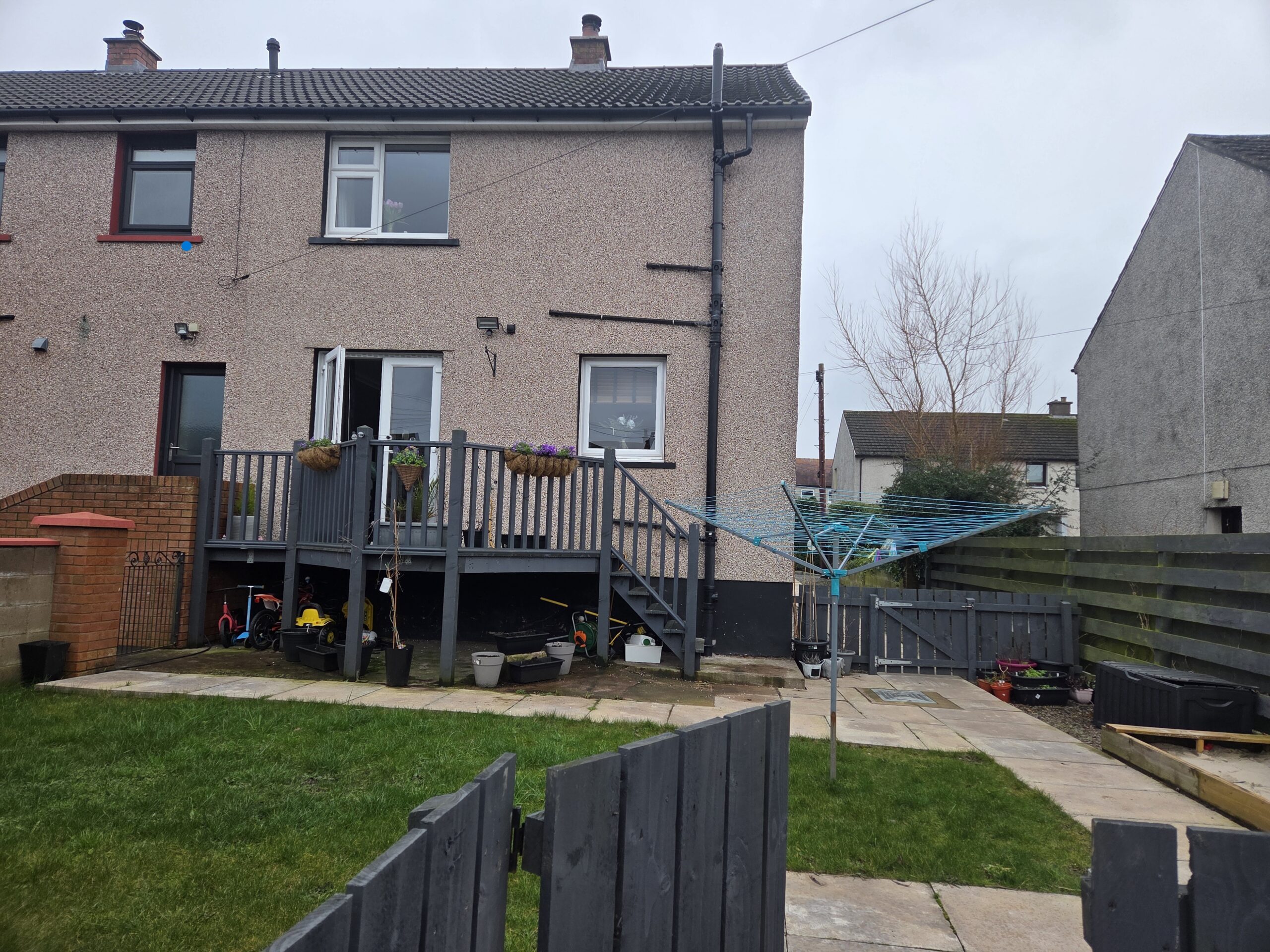 Pebblestone driveway to the front extending to the side elevation.  Paved pathways. The good sized rear garden is laid to a mixture of gravel, grass and paving.  Rotary clothes drier.  Outside cold water tap.  Childs sand pit. There is an area of raised timber decking immediately to the rear of the dwellinghouse and an additional access road to the rear of the property, providing generous parking facilities, both within the front and rear gardens. Roadside boundaries are open. The property is otherwise enclosed by concrete block walls and timber fencing. A generously proportioned, timber framed and clad detached shed/store with power and light supply (6.00m x 3.10m) is situated within the rear garden, surmounted by a pitched, bitumen felt covered roof.