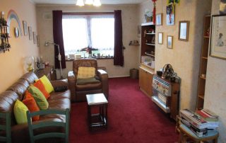 A welcoming dual aspect room with double glazed windows to the front and rear elevations. Gas fire. Triple light fitting. Radiator. Fitted carpet. Carbon monoxide alarm. Television and Telephone points.