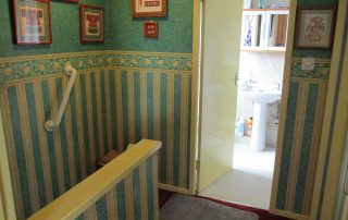 Handrail to one side. Hatch to insulated attic. Smoke alarm. Shelved linen cupboard with small radiator. Fitted carpet. Potential to expand into garden. Doors to two bedrooms and showeroom.