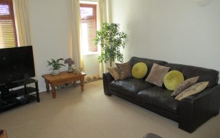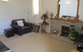 Beautifully presented room with two double glazed windows to the front elevation and obscured window to the side elevation. Venetian blinds. Deep display sills. Open coal fire set within a stone surround. Two wall lights. Television aerial point. Telephone point. Smoke alarm. Hatch to insulated loft space. Coving. Fitted carpet. Radiator. Glazed door through to kitchen and inner hallway.