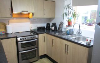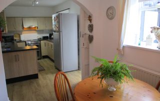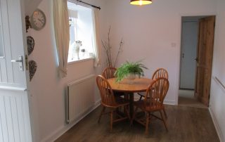 Generous amount of wall and base units incorporating a single drainer sink unit with vegetable compartment and chrome mixer taps. Partially tiled walls. Tiled deep display sill. Single glazed window overlooking the sun room. Roller blind. Electric cooker point. Integrated cooker hood extractor. Under unit lighting. Laminate Oakwood flooring. White painted timber framed stable type door through to sun porch. Archway through to dining area.