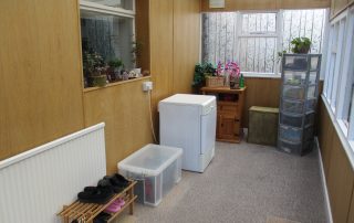 Single glazed window overlooking the rear garden. Roller blind. Laminate Oakwood flooring. Radiator. Door through to inner walkway giving access to bathroom.
