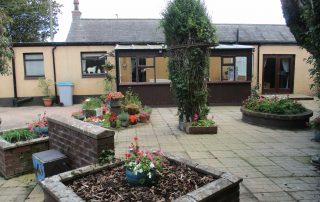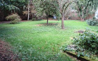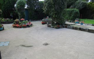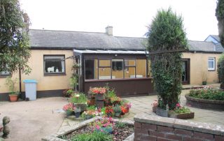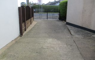 Low level boundary wall and single cast iron gate giving access to the low maintenance front garden area which is laid out in bark and bordered by mature trees and paving. Decorative cast iron double gates give access to the driveway at the side offering parking for up to 4 cars and gives access through to rear garden. The private, secluded and secure rear garden is laid out in paving with a large lawn area with well stocked raised flower beds and mature trees, two of which are apple and pear trees. Greenhouse. Rotary clothes drier. Two outside cold water taps..