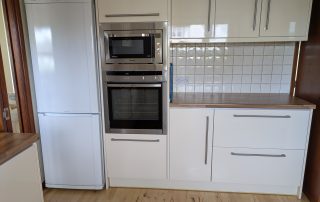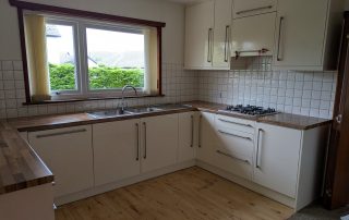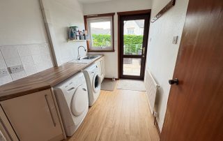 Cream coloured high gloss base units incorporating a single drainer sink unit with chrome swan neck mixer taps. Plumbed for washing machine and space for tumble dryer. Tiled splashbacks. Ceiling stoplight. Useful storage cupboard housing the Alpha CD 18R propane gas fired boiler. Double glazed window to the rear elevation. Laminate flooring. Radiator with thermostatic valve. Part glazed U.P.V.C rear door.