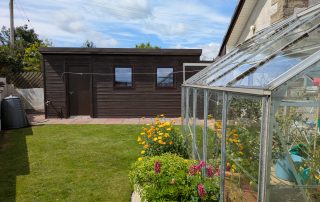 There is a 15m² outhouse of timber construction with metal profile sheet roof, that is used as a store and also serves as a utility room (with sink and electric hot water geyser). There is an open-ended seating area to one end, with perspex roof. Aluminium greenhouse.