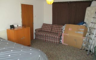 Double glazed sealed unit window overlooking the rear garden. Built-in carpeted wardrobes along one wall with shelving and rails. Fitted carpet. Radiator.
