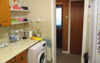 Wall and base units incorporating a single drainer sink unit with chrome mixer taps. Double glazed window to the front elevation. Venetian blinds. Cooker hood extractor. Xpelair. Coving. Telephone point. Plumbed for washing machine. Space for fridge/freezer. Tiled splashbacks. Ceiling striplight. Vinyl flooring. Radiator.