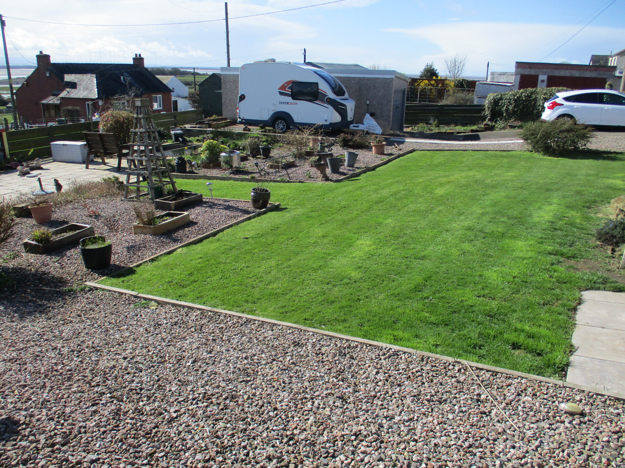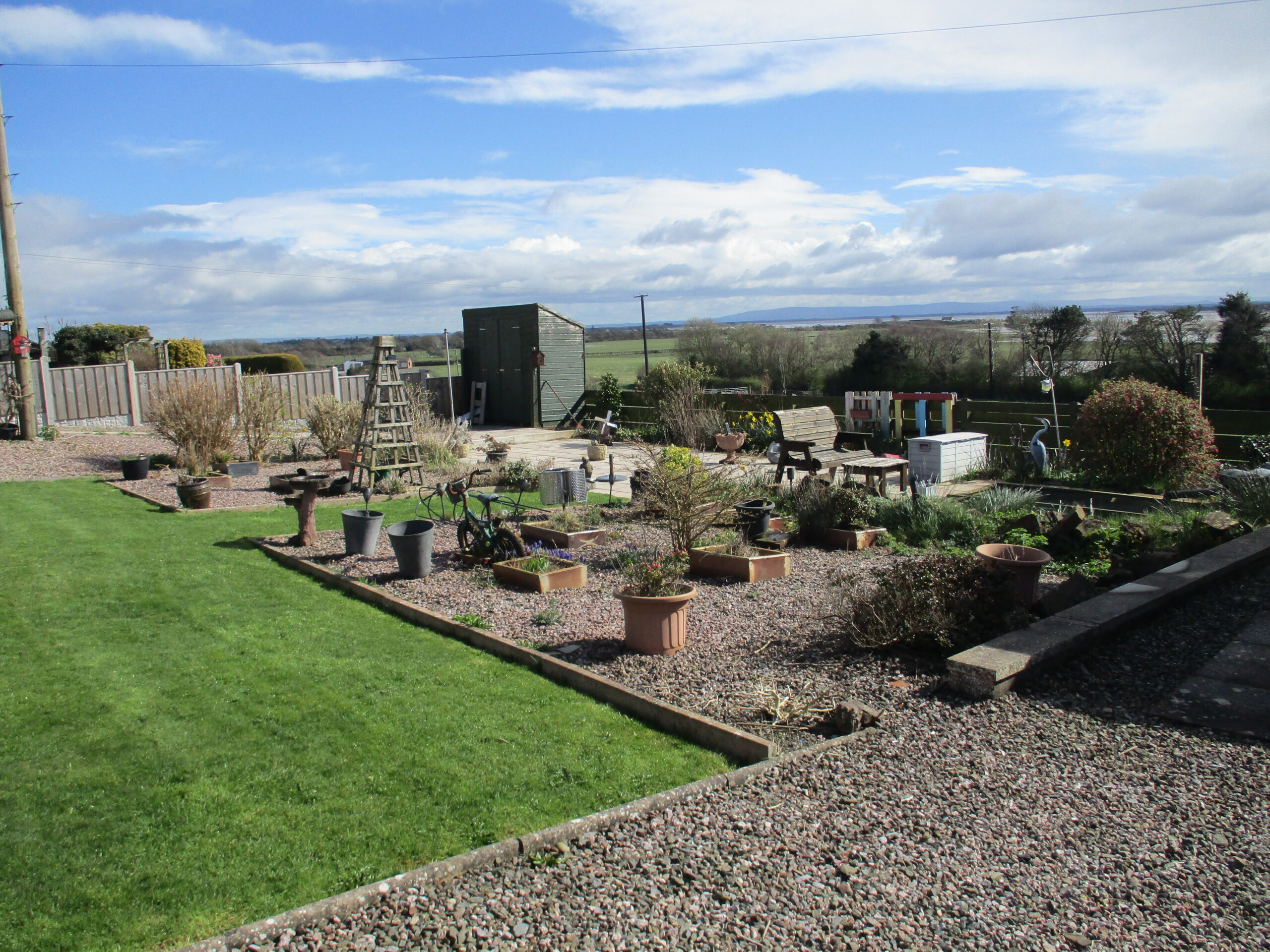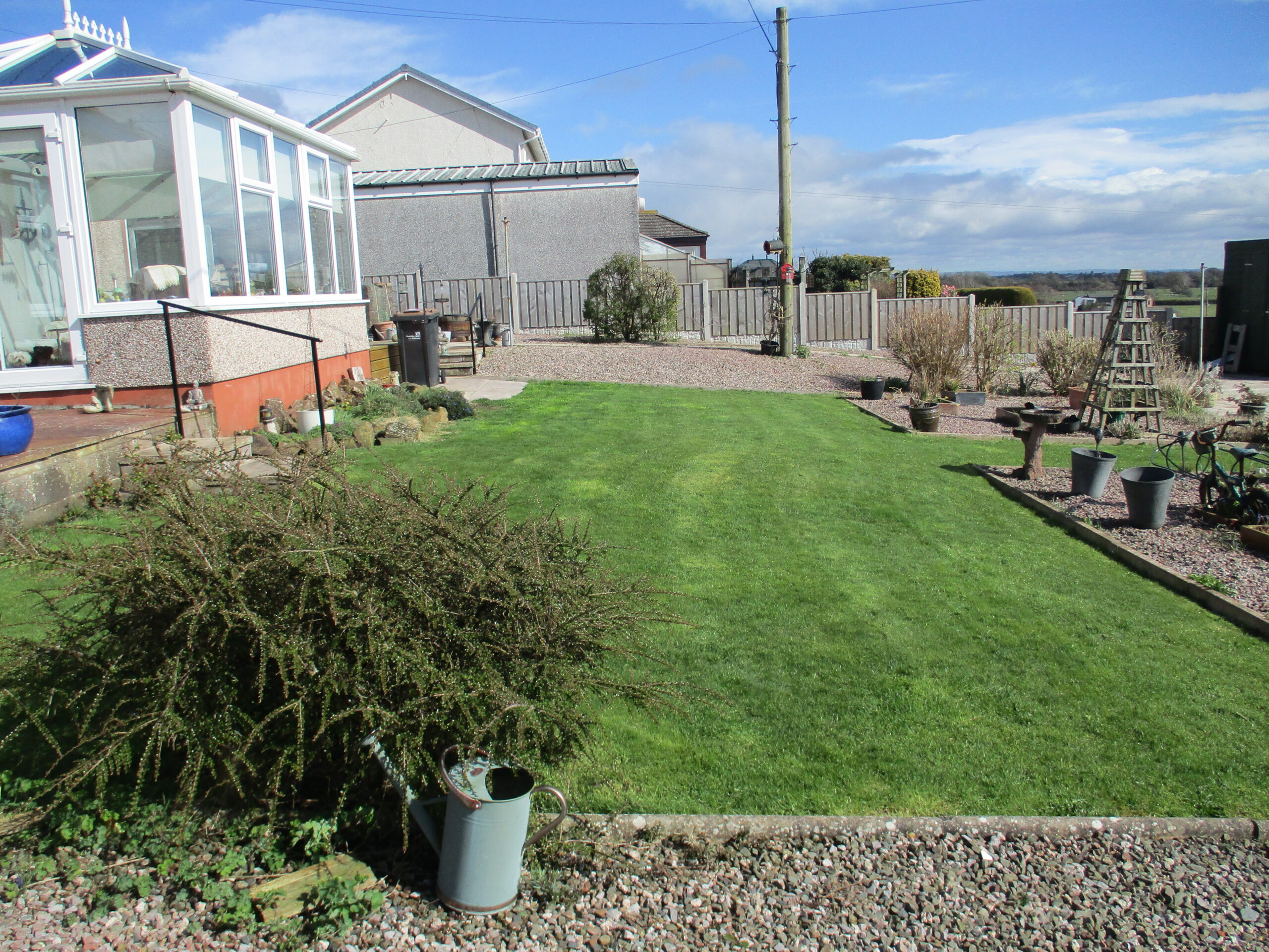 There is a low maintenance front garden laid out in chipping stones surrounded by a well kept lawn area with flower beds to either side. The lovely spacious rear garden has a raised paved patio adjacent to the conservatory and a further paved patio area to enjoy the panoramic views. Raised timber decking area. Well stocked flower beds and fishpond. Three timber framed garden sheds. Cold water tap. Clothes poles. Driveway offering ample parking.